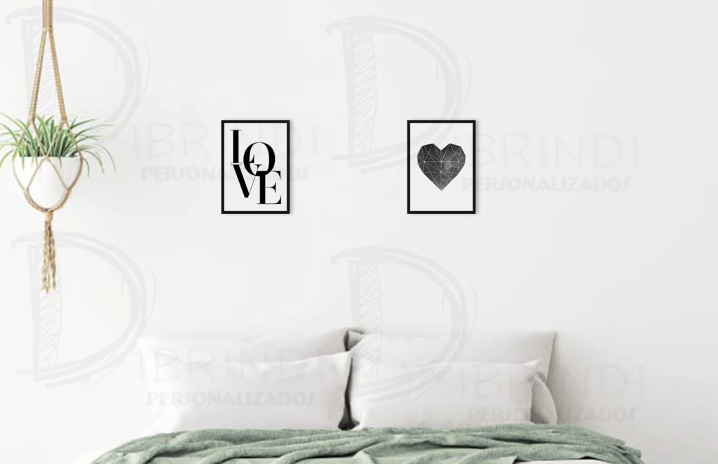 1 quadro "LOVE" preto com borda preto + 1 quadro "coração fractal" preto com borda preto